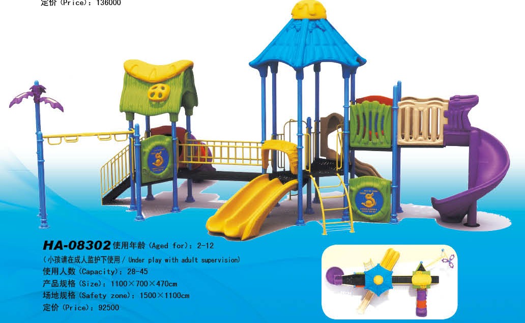 وصف المنتج: مرت ISO9001 المنتجات شهادة نظام الجودة الدولية، تم التعهد المحيط الهادئ للتأمين المحدودة. المادة: المواد المستوردة. الميزات: استنادا إلى مصالح الأطفال وأذواق مصممة تصميما جيدا مجموعة متنوعة من الأساليب، الألوان، غير يتلاشى، ودائمة وقوية ونوعية موثوق بها. التطبيقات: المدارس ورياض الأطفال، والحدائق والفيلات والحدائق والملكية مؤامرة، والملاعب، وقصر للطفولة ومراكز التسوق ومحلات السوبر ماركت وغيرها من أنواع مساحات اللعب في الأماكن المغلقة في الهواء الطلق والترفيه للأطفال.